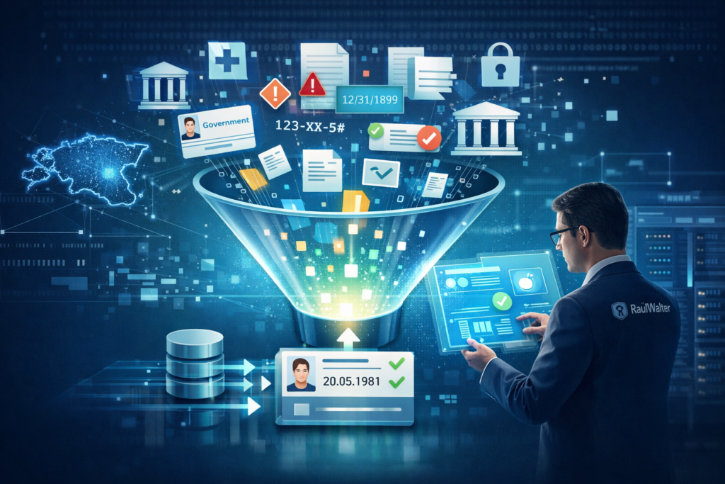 Andmehõive protsess hõlmab automaatset kontrolli, kvaliteedipõhiseid valideerimisrutiine, duplikaadikontrolli, formaatide harmoniseerimist, biomeetriliste andmete kvaliteedianalüüsi ning turvalisi töövooge, mis tagavad, et personaliseerimisele jõuavad ainult korrektsed ja täielikud andmed. Vajaduse korral rakendame andmete puhastamist ja normaliseerimist, mis võimaldab luua töökindlaid seoseid erinevate registrite ja süsteemide vahel.